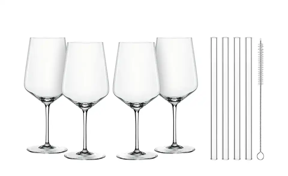 - Bestehend aus 4 Cocktail- bzw. Spritzgläsern und 4 Glastrinkhalmen