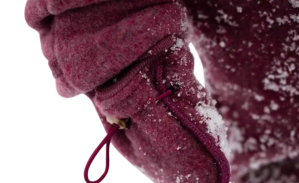 - Mit Kinnschutz, Kapuze und Umschlagbündchen an Händen und Füßen