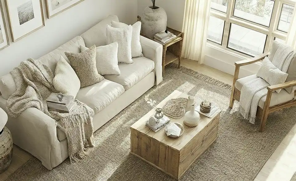 - Materialzusammensetzung TextilFlor 100% Wolle; Rücken: Jute