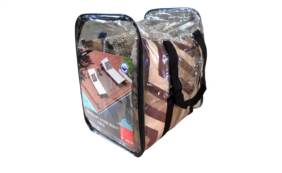 - Lieferumfang / mitgeliefertes Zubehörgefalteter Teppich mit passenden Outdoorkissen (40 x 40cm) in einer Vinyltasche