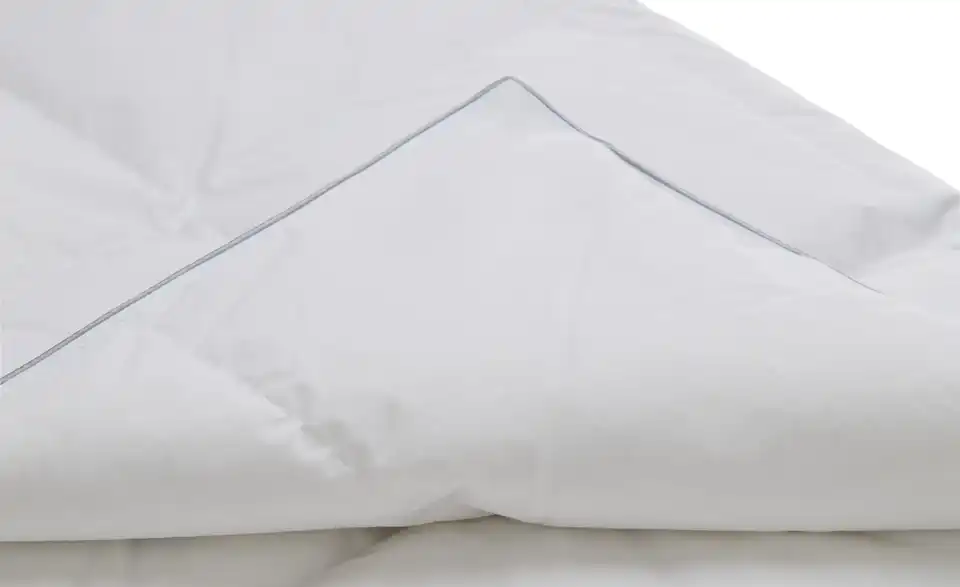 - Materialzusammensetzung TextilBezug Einschütte (100% Baumwolle) mit grauer Satinbiese und ca. 1,5cm InnenstegFüllung Daunen (80%) und Federn (20%)