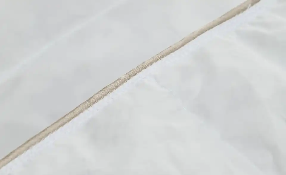 - Materialzusammensetzung TextilBezug Batist (100% Baumwolle) mit braun/beige SatinbieseFüllung Gänsedaunen (80%) u. -federn (20%)