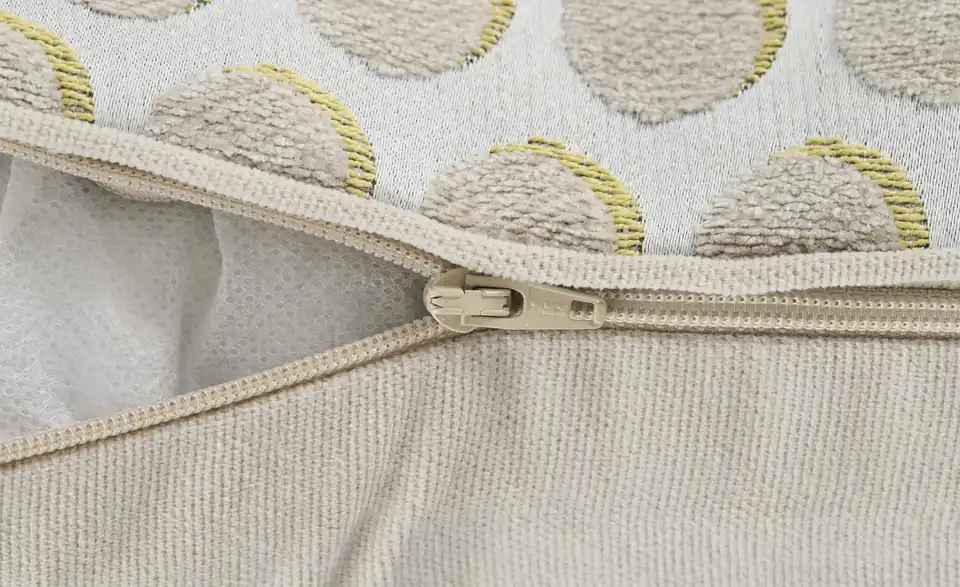 - Materialzusammensetzung TextilBezug Vorderseite 44% Viskose, 34% Baumwolle, 22% PolyesterBezug Rückseite 100% PolyesterFüllung 100% Polyester