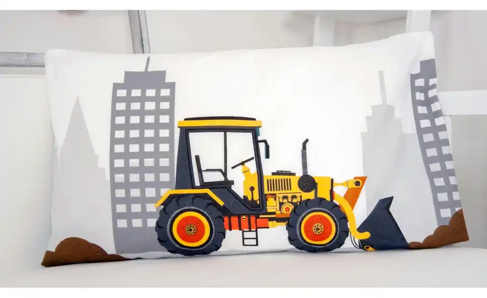 Die temperaturausgleichende babybest® Wendebettwäsche aus 100 % Baumwolle ist nach STANDARD 100 by OEKO-TEX® zertifiziert und auf die zarten Ansprüche sensibler Babyhaut abgestimmt. Das detailreiche Baustelle Design macht die bequeme Bettwäsche zu einem echten Blickfang in jedem Kinderzimmer und zum idealen Geschenk. Dank der kompakten Größe ist die Kleinkinderbettwäsche ideal verwendbar in Reise-, Gitter- und Juniorbetten oder dem ersten großen Bett.Lieferung & Versand
