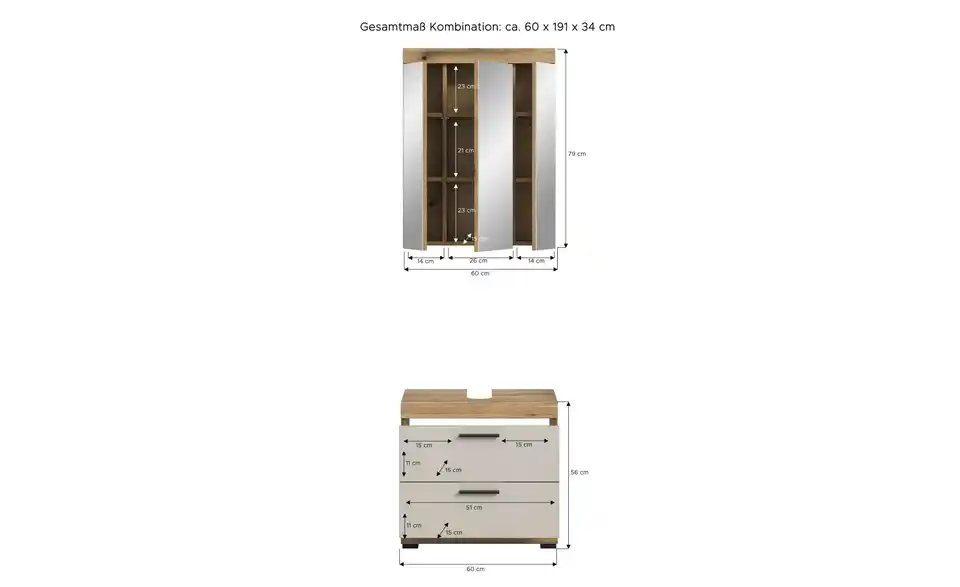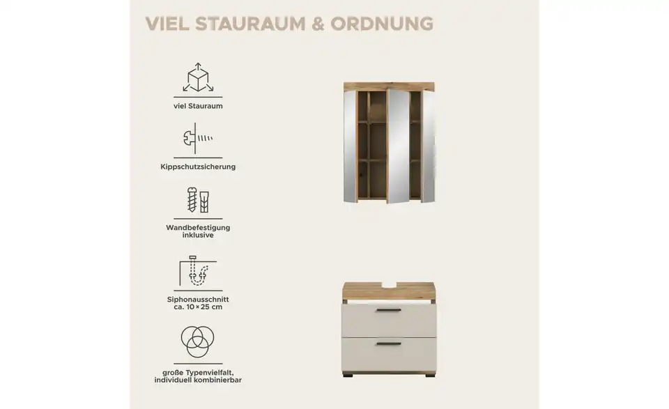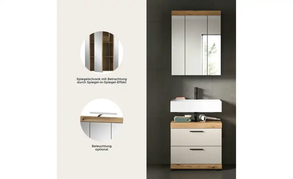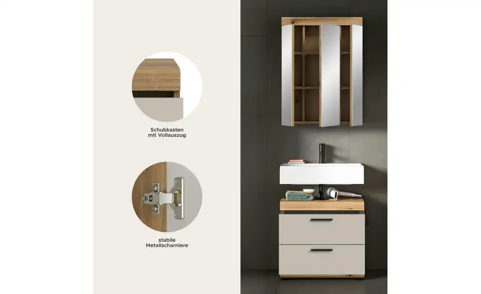 - Bestehend aus1x Waschbeckenunterschrank, 1x Spiegelschrank