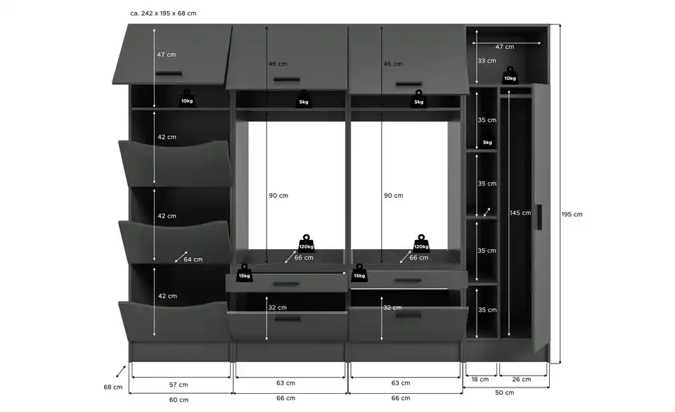 - Gesamtbreite242 cm