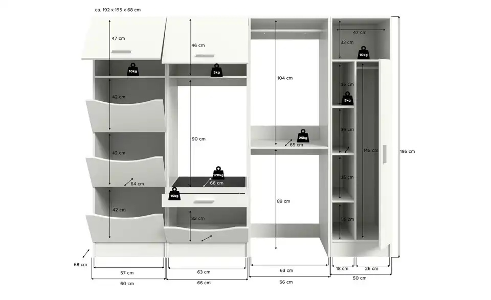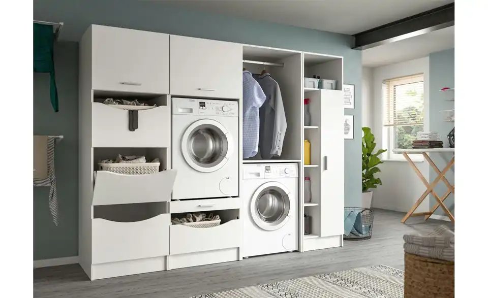 - Bestehend aus1x Wäscheschrank, 1x Waschmaschinnschrank, 1x Waschmaschinnschrank, 1x Universalschrank