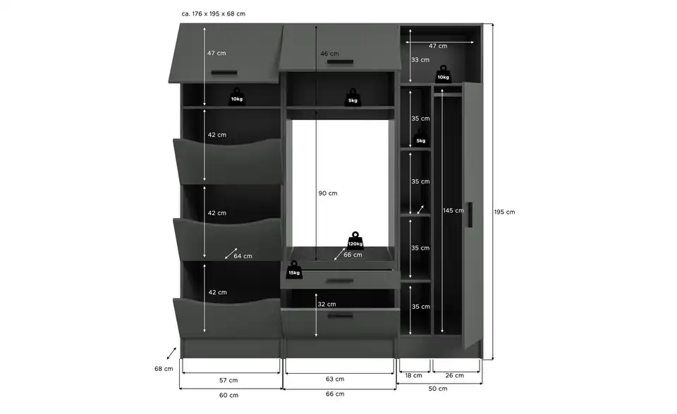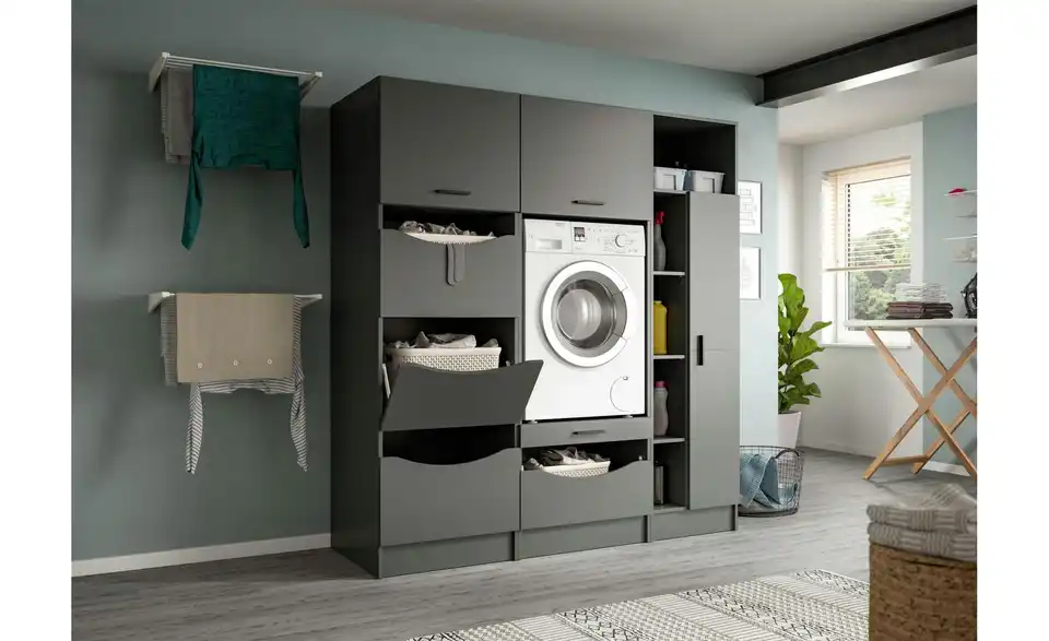 - Bestehend aus1x Wäscheschrank, 1x Waschmaschinenschrank, 1x Universalschrank