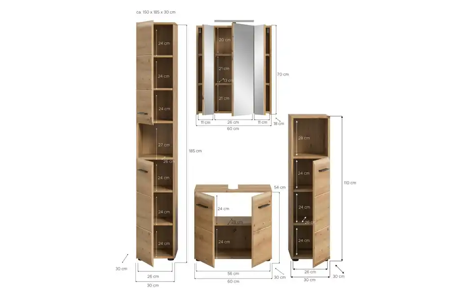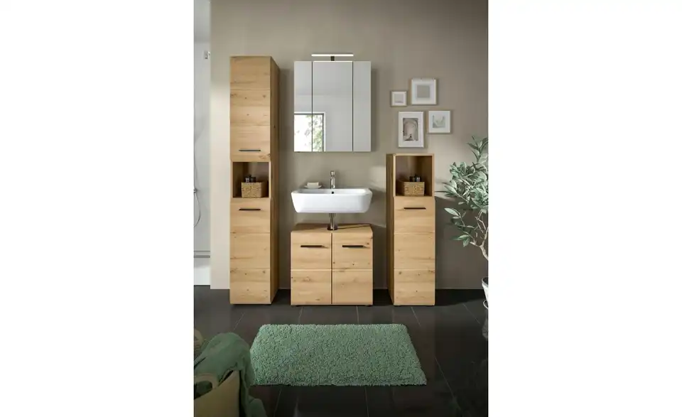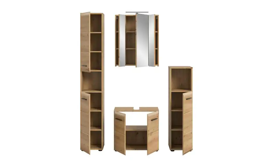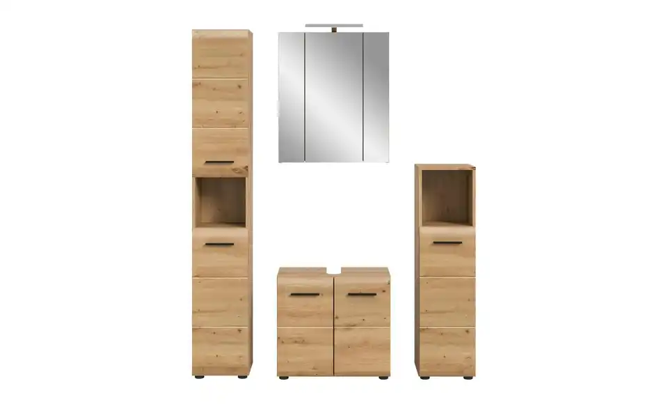 - Bestehend aus1x Hochschrank, 1x WBU, 1x Spiegelschrank inkl. Beleuchtung, 1x Standschrank hoch