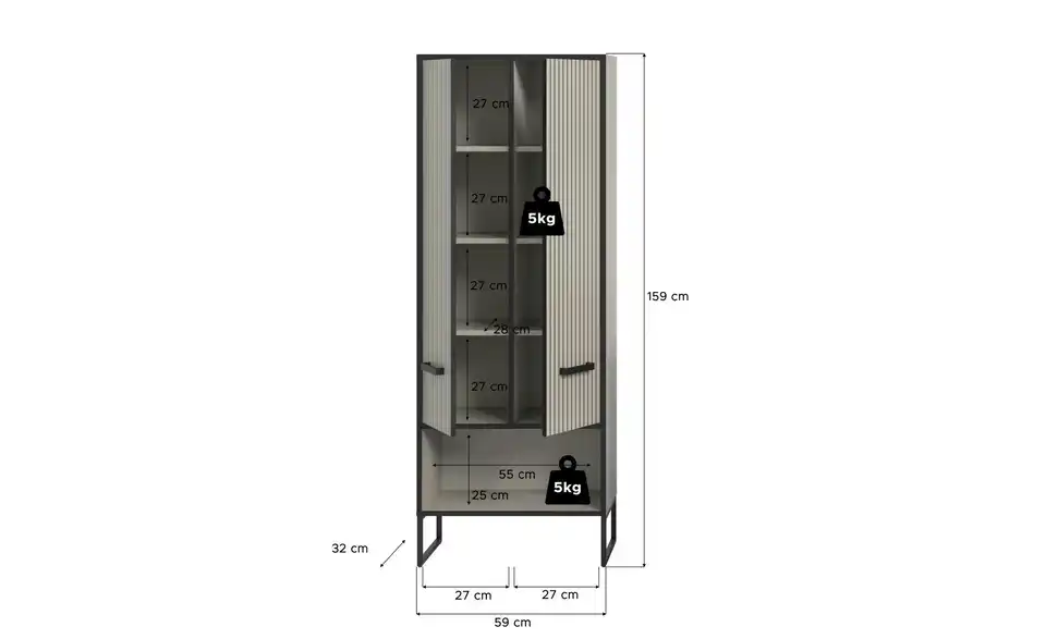 - max. Belastbarkeit je festem Einlegeboden bis ca.5 kg