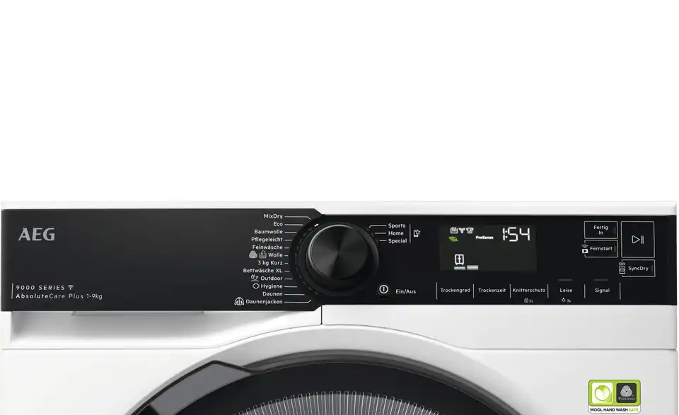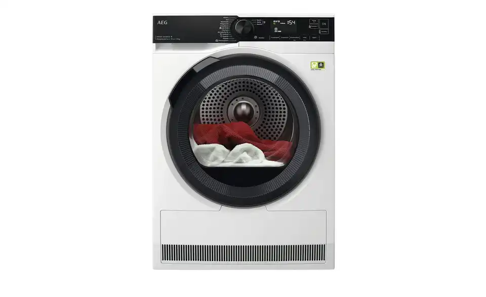 - Mehr zu Ausstattung / FunktionAEG SchontrommelWLAN-fähiger Trockner, steuerbar über die AEG AppEcoLineSprachsteuerung über Google AssistantProSense BeladungserkennungInverter Motor - Extrem leiser Betrieb und längere LebensdauerExtra großes Display mit weißer LED Anzeige,Blende mit KlartextVerlängerter Knitterschutzzusätzliche Programme über die App auswählbarMit der SyncDry-Funktion über die My AEG Care App werden die Programminformationen an den Trockner übertragenLeise Option reduziert das BetriebsgeräuschFertig in – Zeitvorwahl