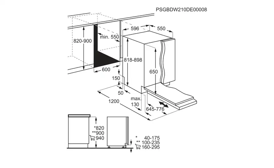 - MontagehinweiseGeräte wird ohne Möbelfront ausgeliefert