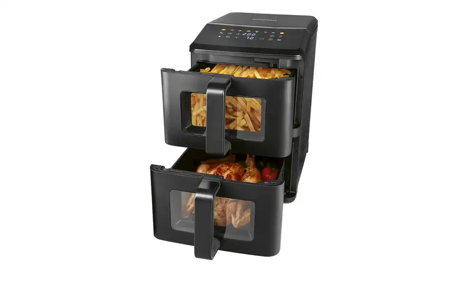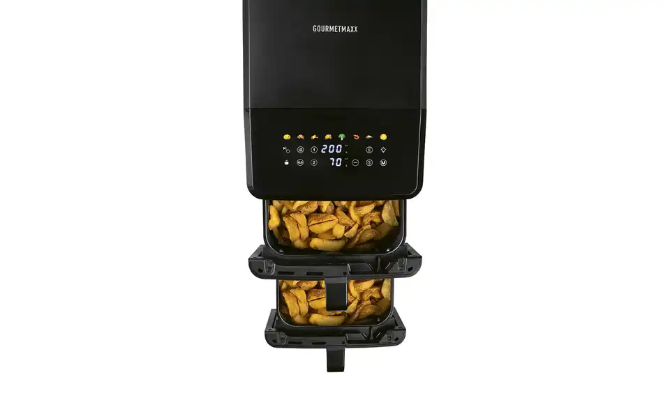 - Mehr zu Ausstattung / FunktionHerausnehmbarer Frittierbehälterautomatische Shake-Reminder FunktionVertikal Designintegrierter Shake-ReminderSynch & Smart Cook8 voreingestellte Programme6 FunktionenMatch Funktion