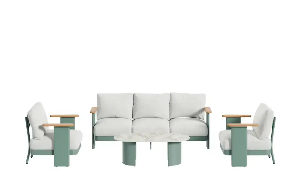 - Set besteht aus1 Sofa 3-sitzig1 Tisch2 Sessel