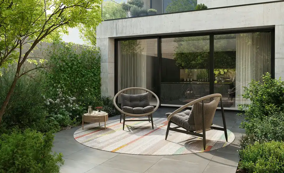 - Material Füße / GestellPolyrattanStahl pulverbeschichtet