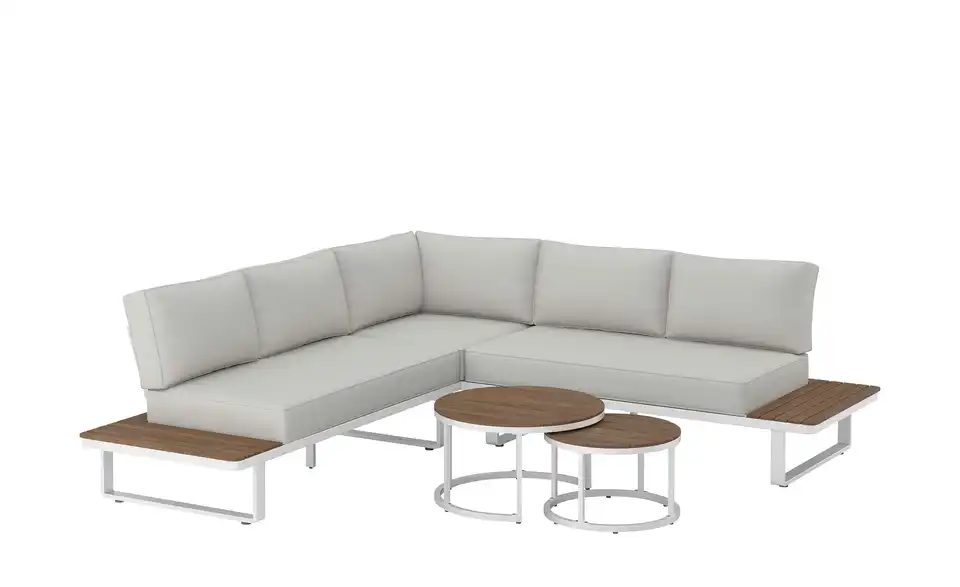 - Set besteht aus1 Ecksofa 3-sitzig1 Sofa 2-sitzig2 Tische
