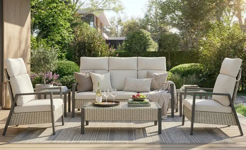 - Inkl. Sitz- und Rückenkissen in beige