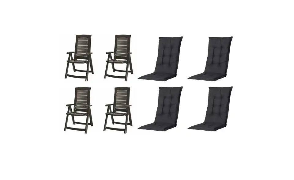- Lieferumfang / mitgeliefertes Zubehör4 x Klappsessel graphit, 4 x Auflage black