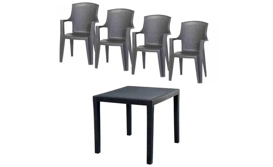 - Lieferumfang / mitgeliefertes Zubehör4 x Stapelsessel, 1 x King Tisch 77 x 77