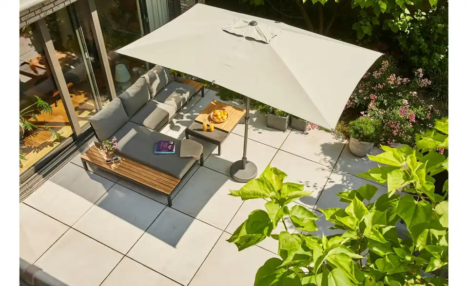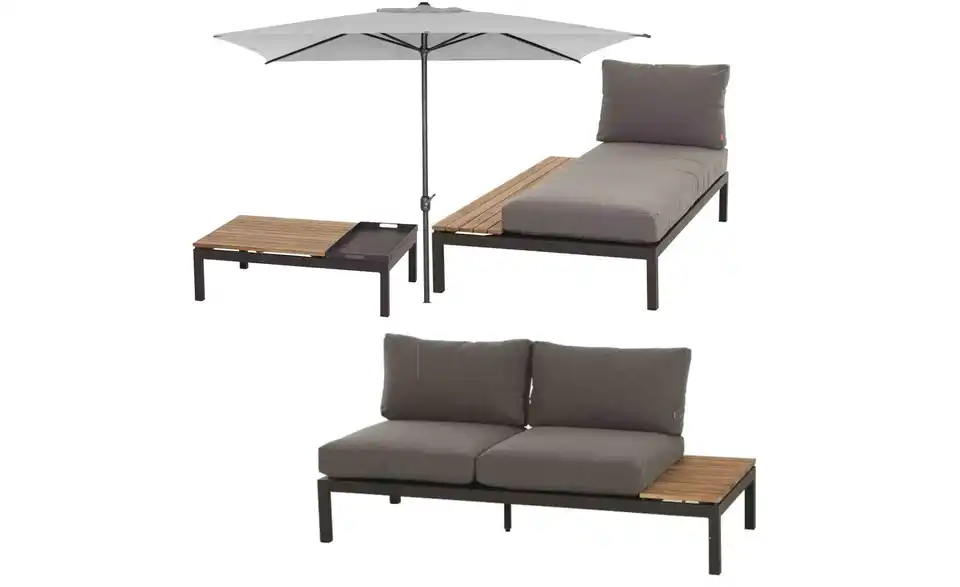 - Lieferumfang / mitgeliefertes Zubehör1x Recamiere rechts, 1x Recamiere links, 1x Loungetisch, 1x Sonnenschirm