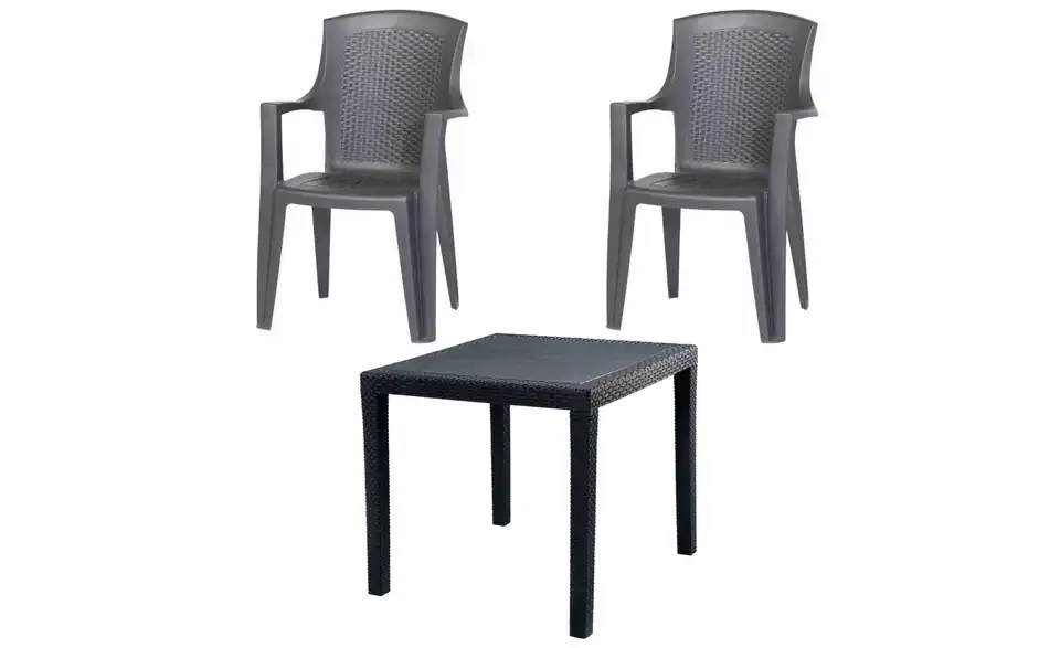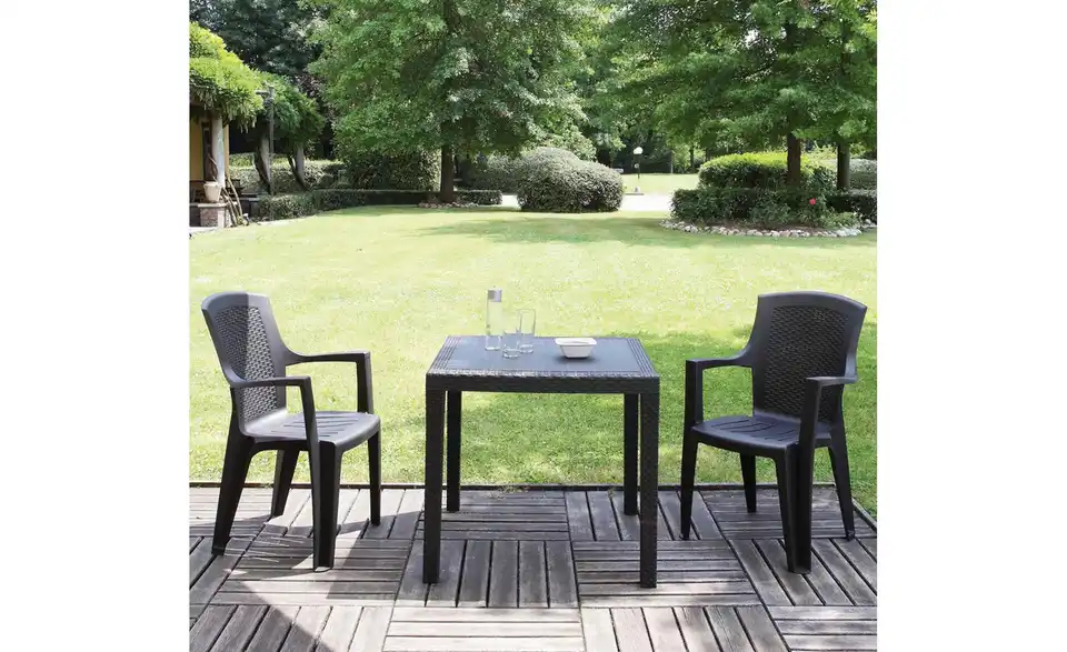 - Lieferumfang / mitgeliefertes Zubehör2 x Stapelsessel, 1 x King Tisch 77 x 77