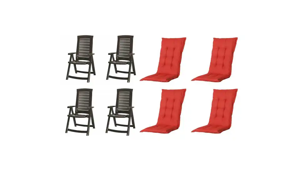 - Lieferumfang / mitgeliefertes Zubehör4 x Klappsessel graphit, 4 x Auflage red