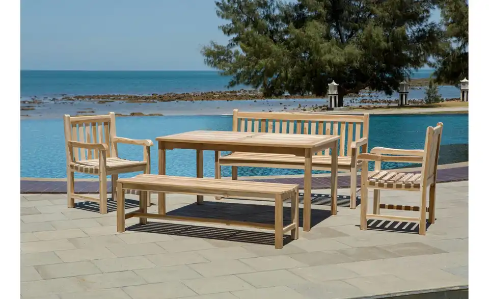 - Lieferumfang / mitgeliefertes Zubehör2 Armlehnstühle, 2 Bänke, 1 Tisch