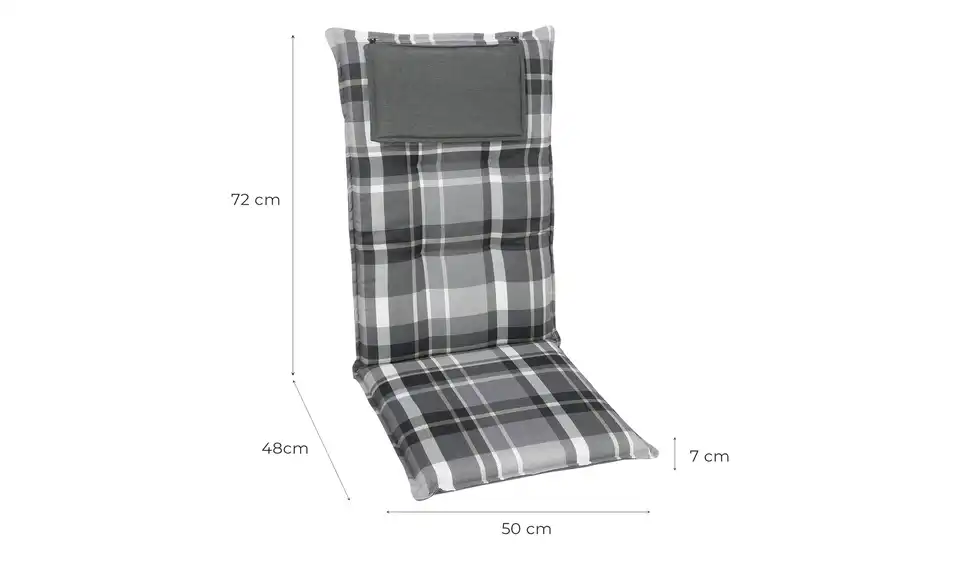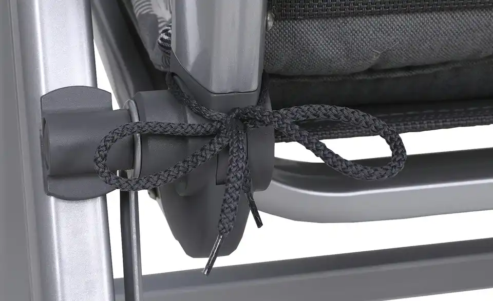 - Mehr zu AusführungWendeauflage mit Stehsaum und integriertem Kopfpolster, verstellbares Gurtband im Rücken, seitliche Bindekordeln und Kreissteppung im Lehnenrücken