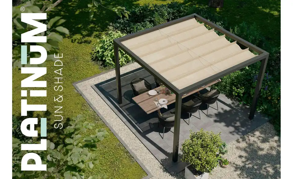 - Mehr zu Ausstattung / FunktionDer Stoff läuft an Stahlseilen und kann manuell geöffnet und geschlossen werden, dank der offenen Gewebe-Struktur, kann das Sonnensegel die ganze Saison draußen bleiben (März bis September) und selbst bei starkem Wind aufgespannt bleiben