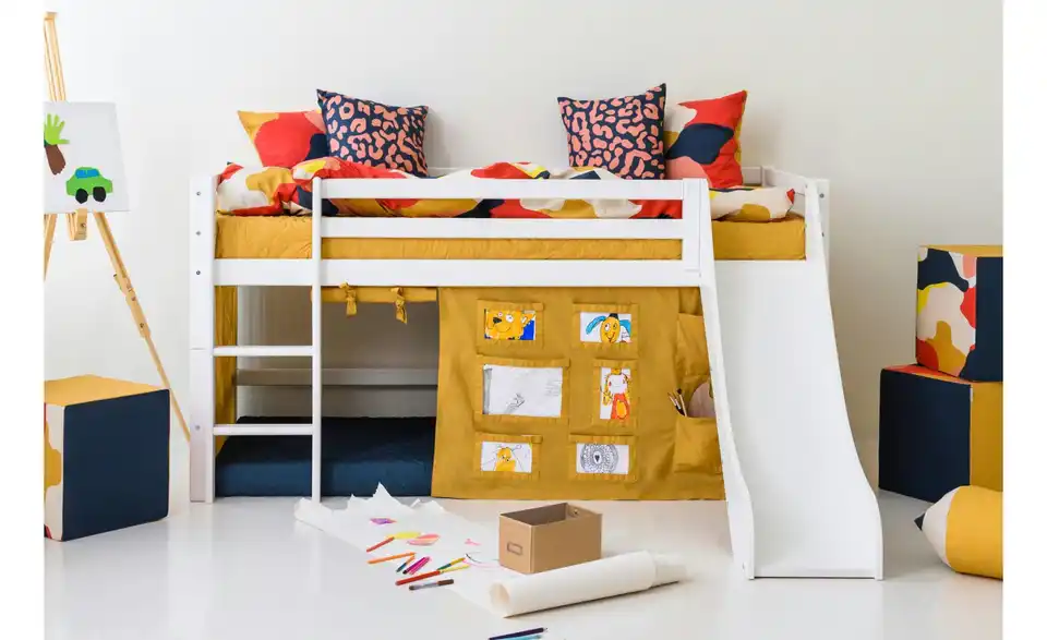 - Für Kinderbetten mit Liegefläche 90x200 und Höhe unter dem Bett ca. 70 cm