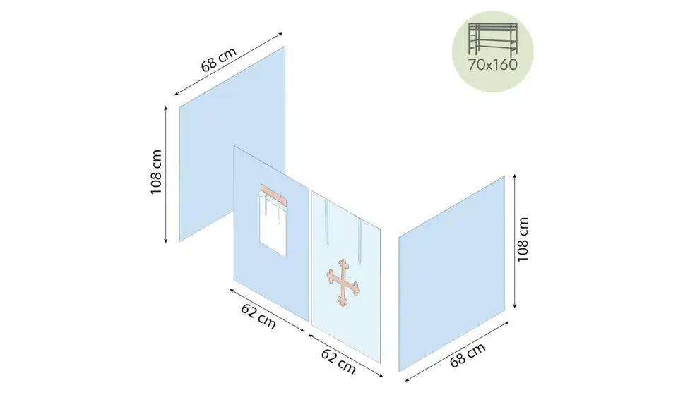 - Lieferumfang / mitgeliefertes ZubehörVorhangset für Hoppekids Mittelhochbetten mit Höhe unter dem Bett ca. 108 cm mit Aufhängung