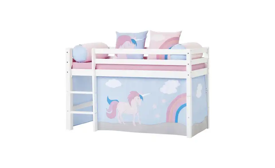 - Lieferumfang / mitgeliefertes ZubehörVorhang für die Seiten und die Front des Kinderbetts mit Aufhängung - für Kinderbetten mit Liegefläche 70x160 und Höhe unter dem Bett ca. 70 cm
