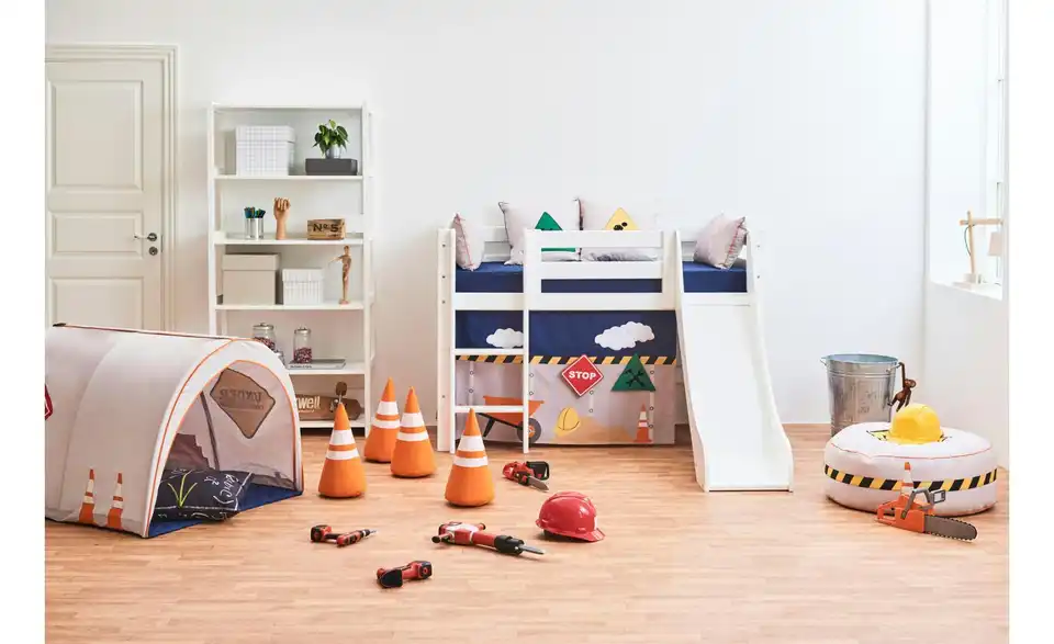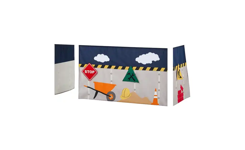 - Lieferumfang / mitgeliefertes ZubehörVorhang für die Seiten und die Front des Kinderbetts mit Aufhängung - für Kinderbetten mit Liegefläche 70x160 und Höhe unter dem Bett ca. 70 cm