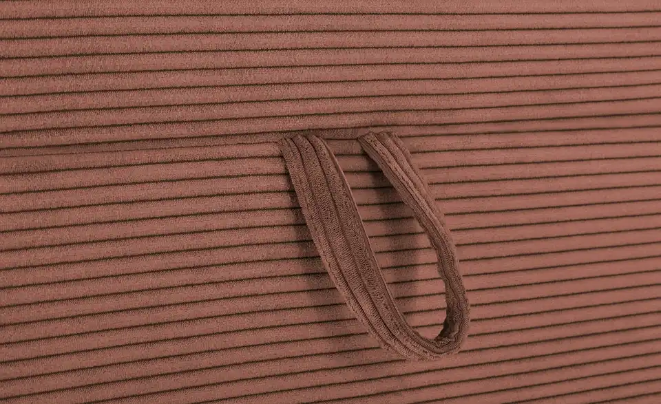- AusführungBoxspringbett mit Keder am Kopfteil in Ribcord-Bezug mit Bettkasten