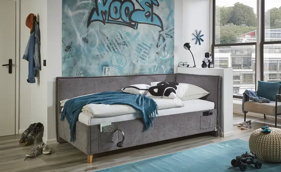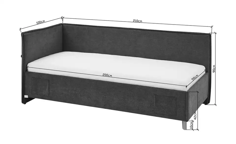 - Zwei stylische Seitentaschen am Bett für Handy, Tablet oder Bücher