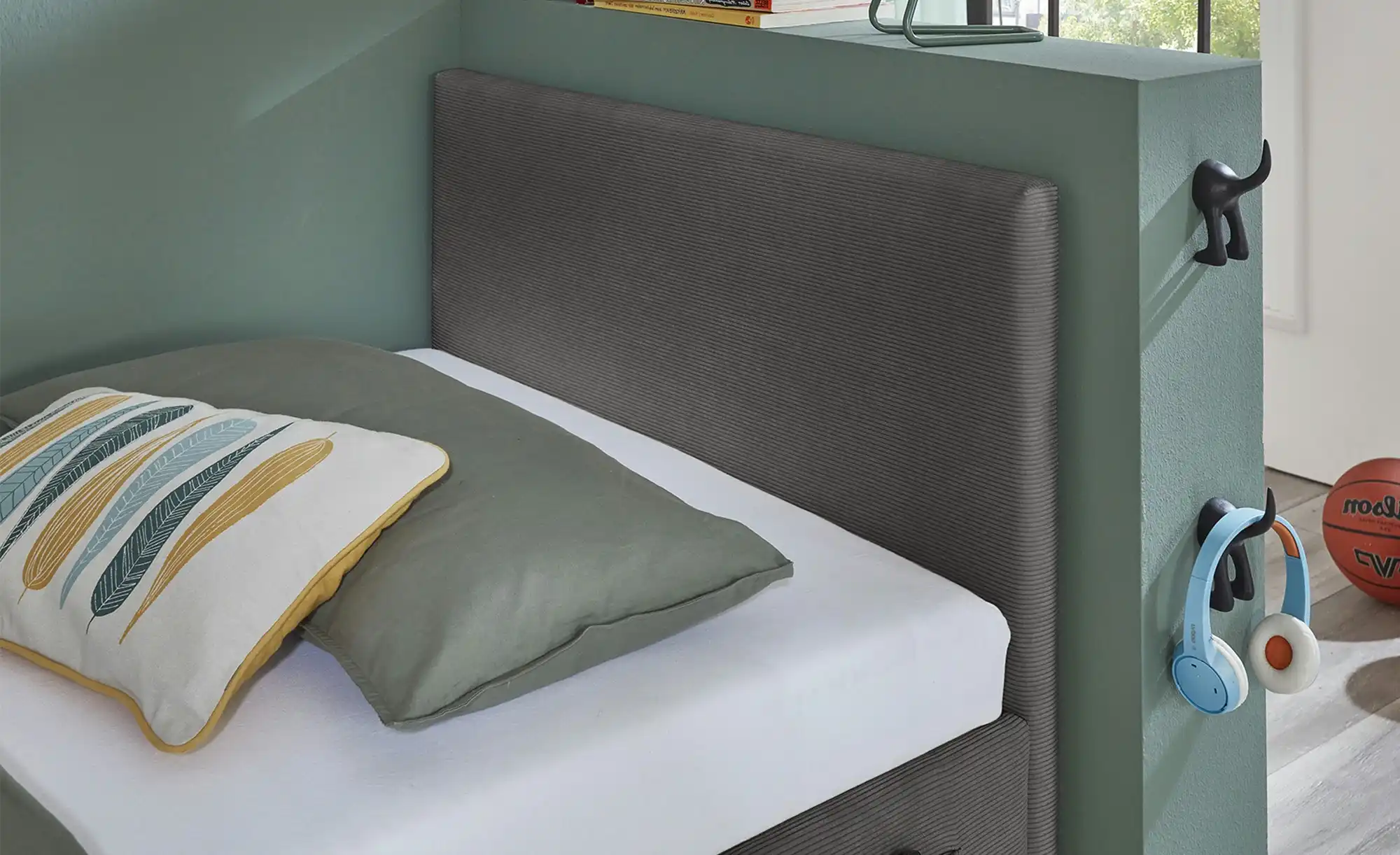 - Zwei praktische Seitentaschen am Bett für Handy, Tablet oder Bücher