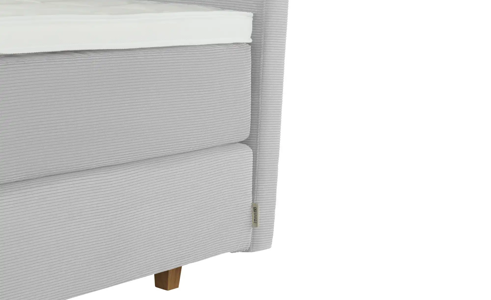 Minimalistisch und dadurch kombinationsfreudig: Das Boxspringbett Jette Flex passt in diverse Einrichtungskonzepte. Der geriffelte, weiche Cordbezug und die Eichen-Massivholzfüße sind dabei gekonnt aufeinander abgestimmt und sorgen für ein harmonisches Gesamtbild. Dank der Kombination aus Bonnellfederkernen in der Box und den Tonnentaschenfederkernen in der Matratze wird das Bett auch höchsten Komfortansprüchen mühelos gerecht. Der mitgelieferte Topper rundet Dein Schlaferlebnis dabei zusätzlich ab. Wähle nur noch Deinen bevorzugten Matratzenhärtegrad und entscheide Dich für deine favorisierte Topper-Art: Schon hast Du Deine ganz persönliche Schlaf-Oase erschaffen. Unser Tipp: Ergänze das Boxspringbett mit der Bettbank Jette Flex, um eine Sitzgelegenheit im Schlafzimmer zu schaffen. Und praktischen Stauraum für Bettwäsche und Co bietet sie auch.Lieferung & Versand