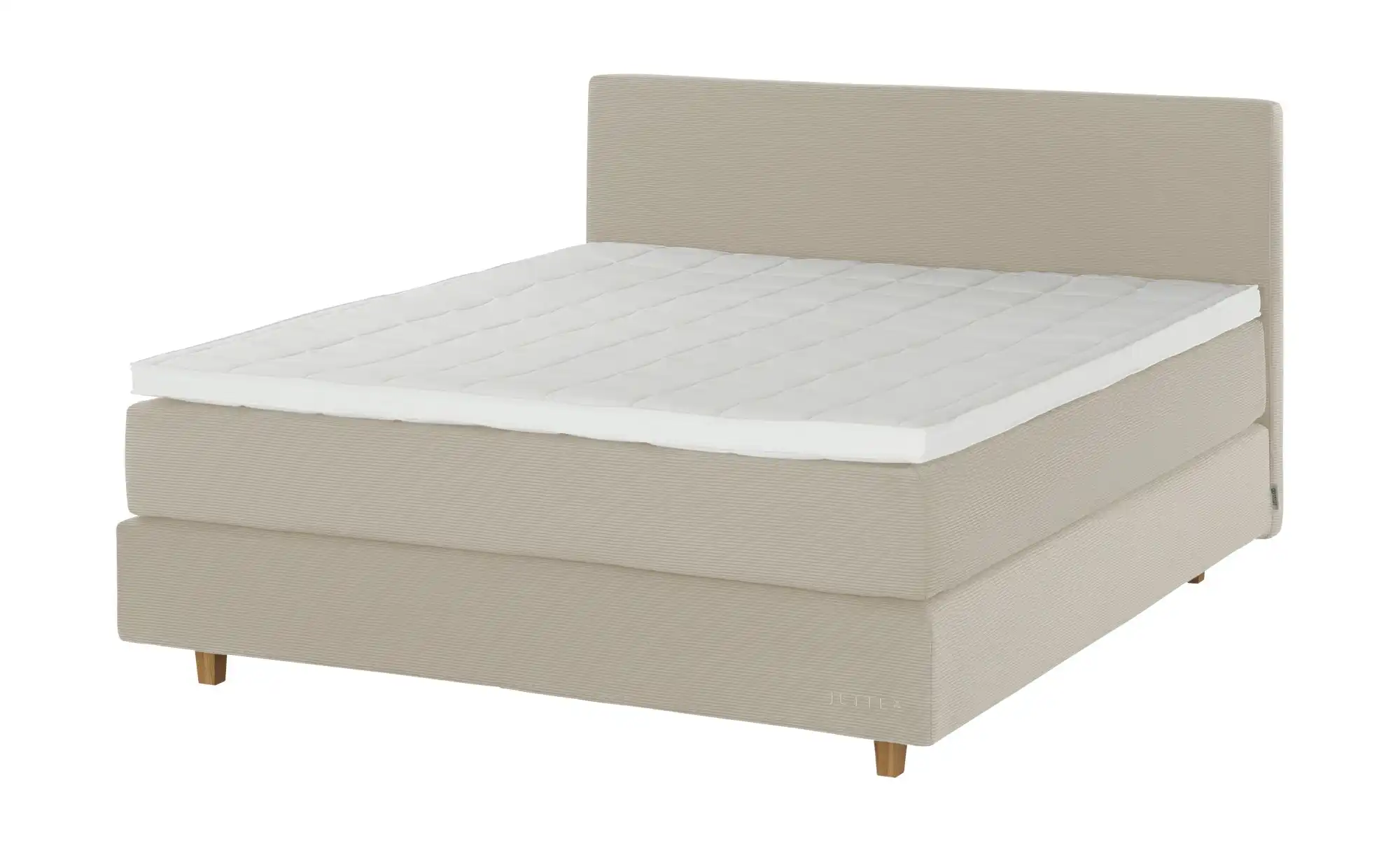 Minimalistisch und dadurch kombinationsfreudig: Das Boxspringbett Jette Flex passt in diverse Einrichtungskonzepte. Der geriffelte, weiche Cordbezug und die Eichen-Massivholzfüße sind dabei gekonnt aufeinander abgestimmt und sorgen für ein harmonisches Gesamtbild. Dank der Kombination aus Bonnellfederkernen in der Box und den Tonnentaschenfederkernen in der Matratze wird das Bett auch höchsten Komfortansprüchen mühelos gerecht. Der mitgelieferte Topper rundet Dein Schlaferlebnis dabei zusätzlich ab. Wähle nur noch Deinen bevorzugten Matratzenhärtegrad und entscheide Dich für deine favorisierte Topper-Art: Schon hast Du Deine ganz persönliche Schlaf-Oase erschaffen. Unser Tipp: Ergänze das Boxspringbett mit der Bettbank Jette Flex, um eine Sitzgelegenheit im Schlafzimmer zu schaffen. Und praktischen Stauraum für Bettwäsche und Co bietet sie auch.Lieferung & Versand
