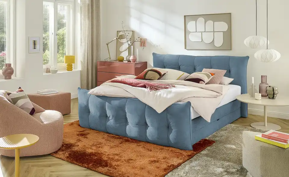 - Lieferumfang / mitgeliefertes ZubehörBoxspringbett mit Bettkasten und Kaltschaumtopper