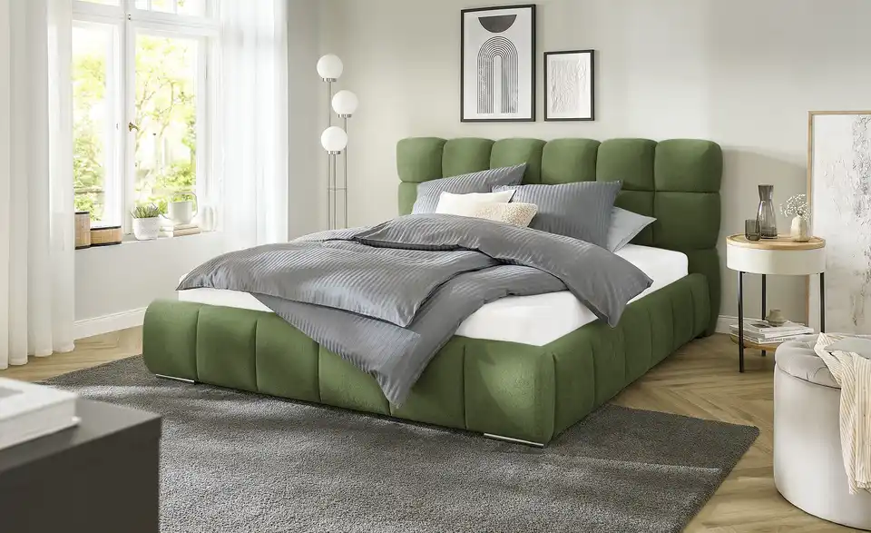 - Ausstattung / FunktionBettkasten mit BelüftungBettkastenöffnung am Fußteilmit Gasdruckfederinnen liegender Bettkasten