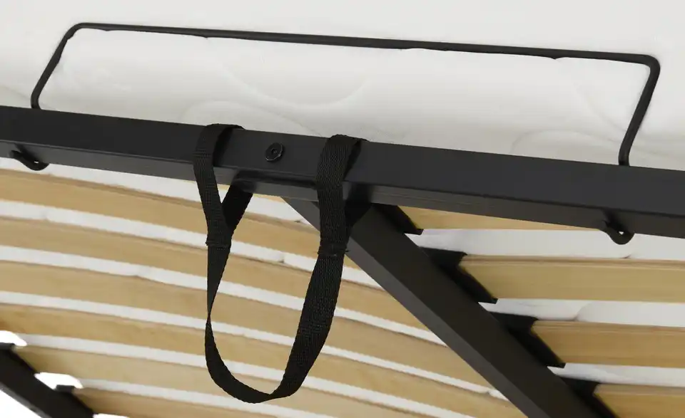 - Ausstattung / FunktionBettkasten mit BelüftungBettkastenöffnung am Fußteilmit Gasdruckfederinnen liegender Bettkasten