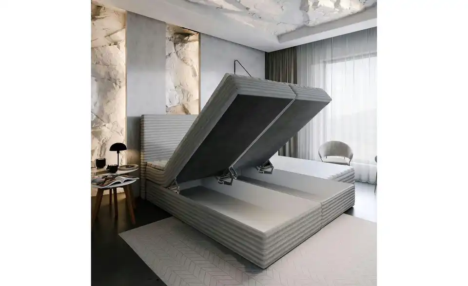 - Ausstattung / Funktioninnen liegender Bettkastenmit Gasdruckfeder