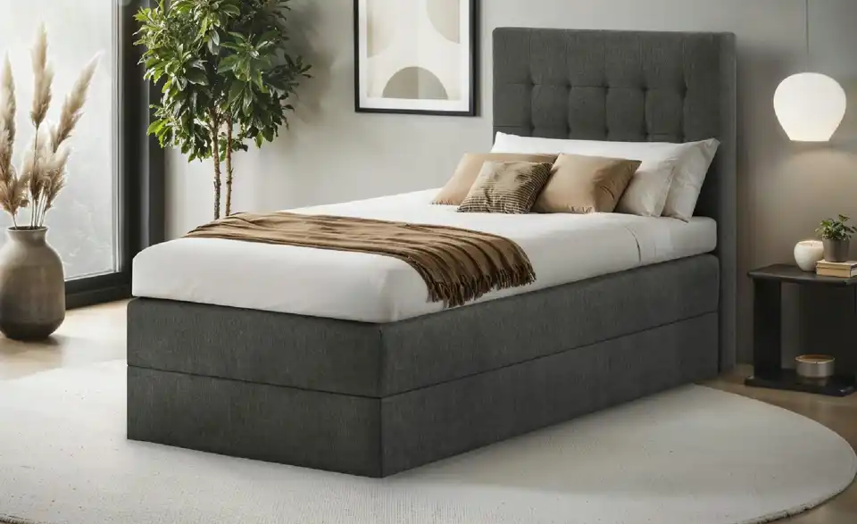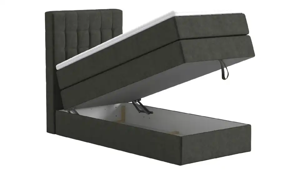 - Lieferumfang / mitgeliefertes ZubehörAnthrazitfarbenes Boxspringbett mit Bettkasten 90x200 cm