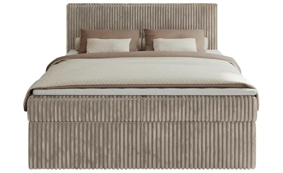 - Lieferumfang / mitgeliefertes ZubehörTaupefarbenes Polsterbett mit Bettkasten 180x200 cm