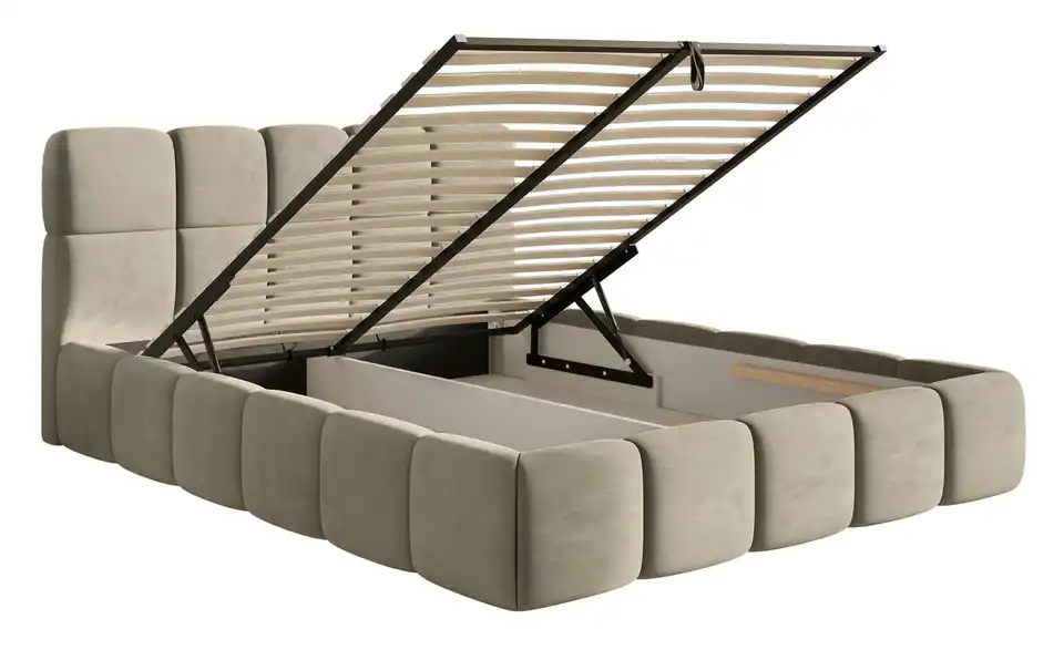 - Ausstattung / Funktioninnen liegender BettkastenBettkastenöffnung am Fußteilmit Gasdruckfeder