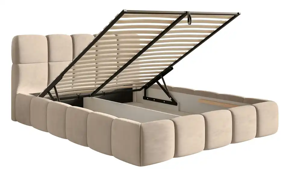 - Ausstattung / Funktioninnen liegender Bettkastenmit GasdruckfederBettkastenöffnung am Fußteil