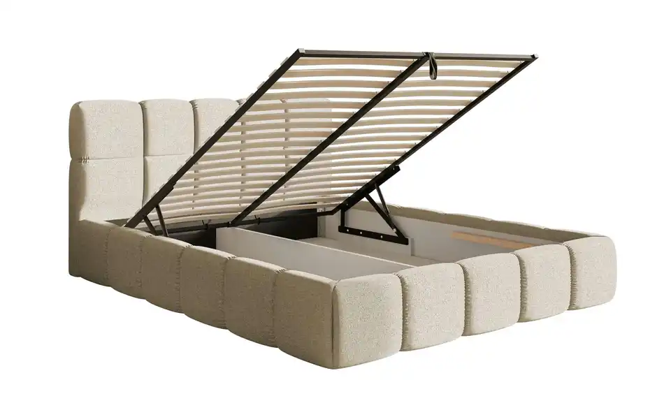 - Ausstattung / Funktioninnen liegender BettkastenBettkastenöffnung am Fußteilmit Gasdruckfeder