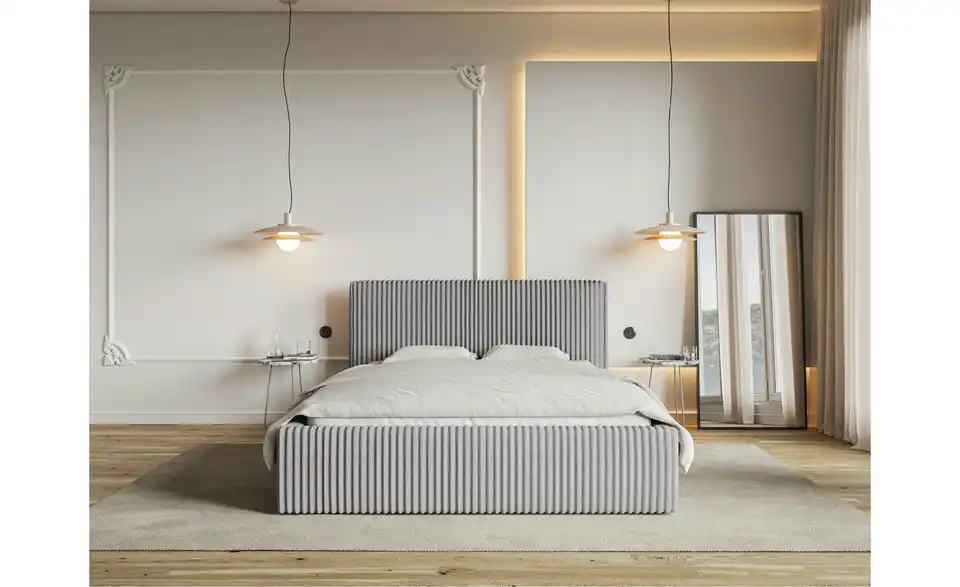 - Ausstattung / Funktioninnen liegender BettkastenBettkastenöffnung am Fußteilmit Gasdruckfeder