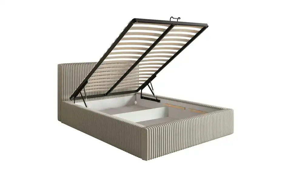 - Ausstattung / Funktioninnen liegender BettkastenBettkastenöffnung am Fußteilmit Gasdruckfeder