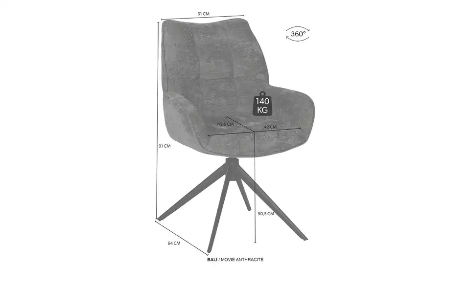 - Ausstattung / FunktionArmlehneDrehfunktion
